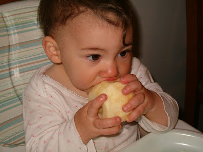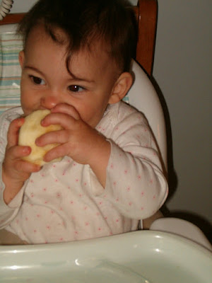 I forgot how great a peeled and cored apple could be for a little one's teething gums!
