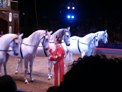 The horses were so beautiful and quick! We thought for sure they were going to run right out of the ring. KM couldn't believe they could be trained so well.