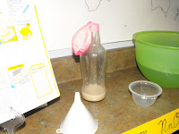 First we started with our Pop-Bottle Science kit - now I have seen a lot of various styles of this kit and really if I hadn't found it on clearance I probably would have just purchased a book or searched websites as the experiments are simple, but great and we had everything else that came in the kit at the house already.