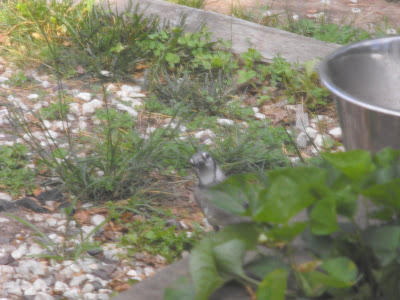 Every afternoon, at just about the same time, I have a little visitor who appears outside our workroom window. He sits on the ledge and waits for his turn. After several failed attempts over the last few days, I was able to snap a few quick shots of him today.