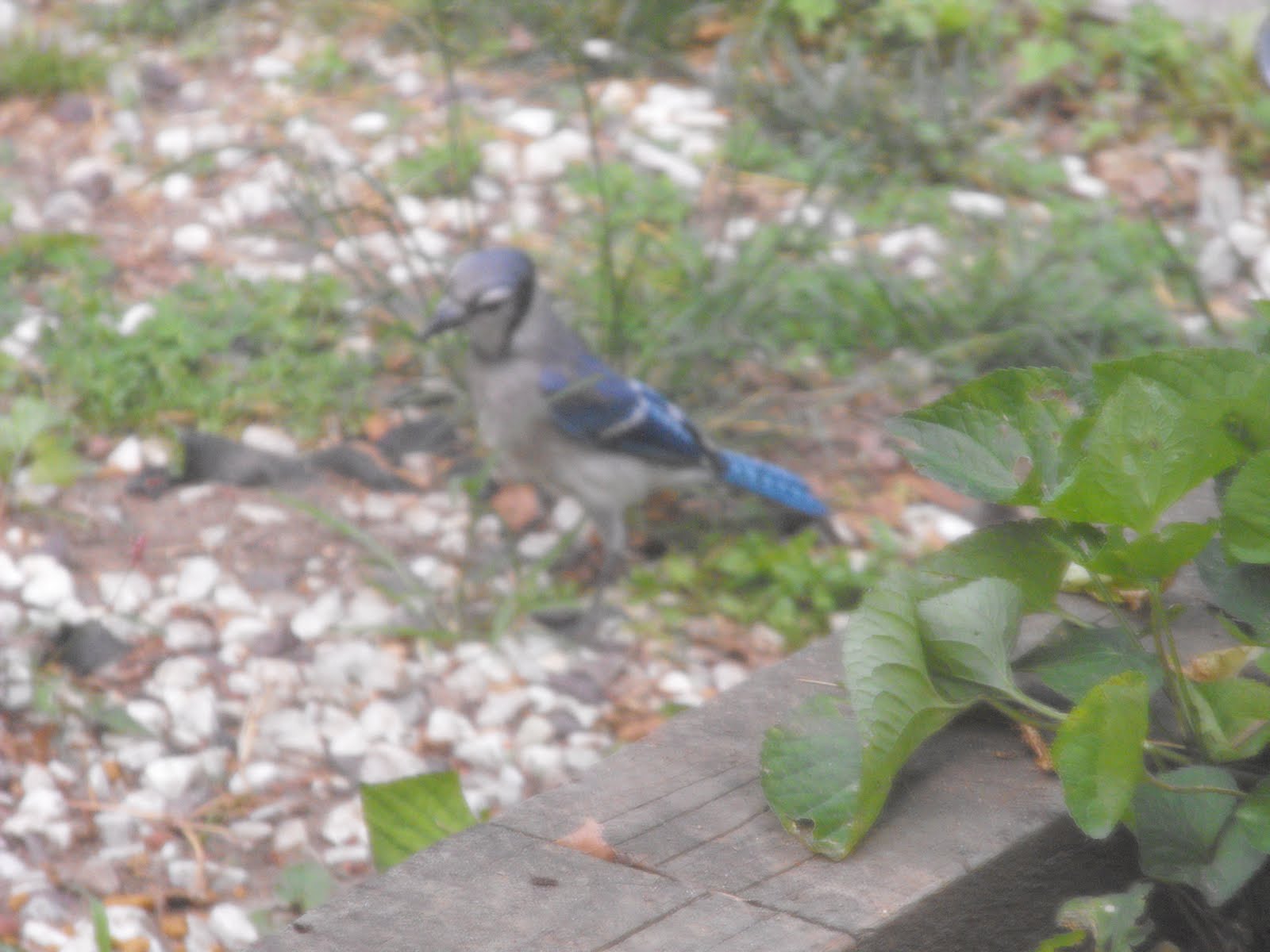 He comes to eat the leftovers in the dogs bowl. Apparently the bird seed and bread chunks we leave out back are not good enough for this Blue Jay! We are waiting to see if the kibble bulks them up like it did Dixie!
