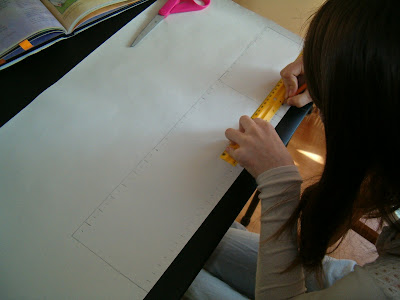 We used butcher paper instead of construction paper, as we didn't have any big enough for all three pictures across - she measured the 1/2 inch increments diligently.