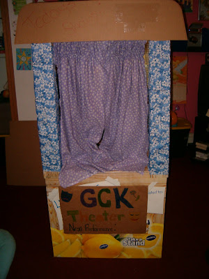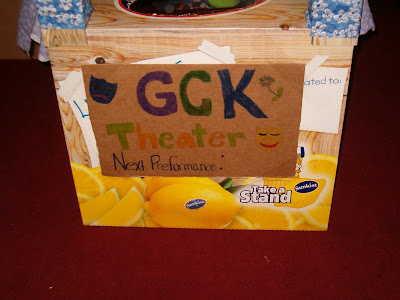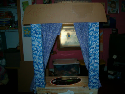 Anyway, we were cleaning things out, getting ready for the new "school year" to begin next week when KM had a wonderful idea - why don't we make the lemonade stand into a puppet theater?