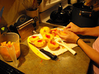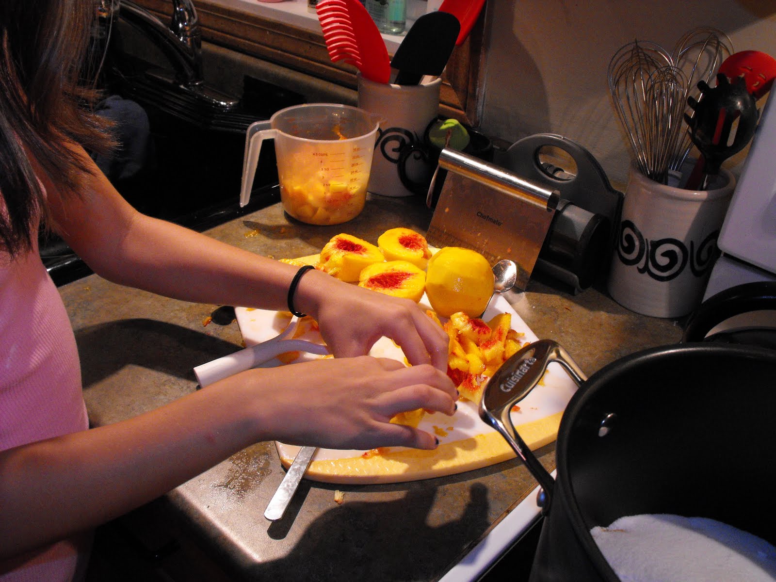 CJ's parents sent us up some peaches from South Carolina so we made some peach syrup and peach preserves.