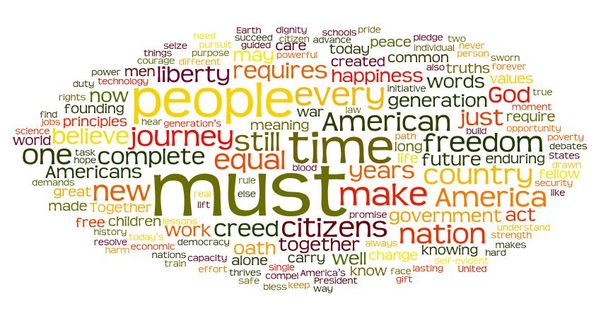 ~~~Tip~~~ when we did the cloud the first time, we got a giant APPLAUD through the middle of the cloud because it was in the transcript 24 times! if you make your own use your find tool to remove all the noted "applause" points to get an accurate cloud.