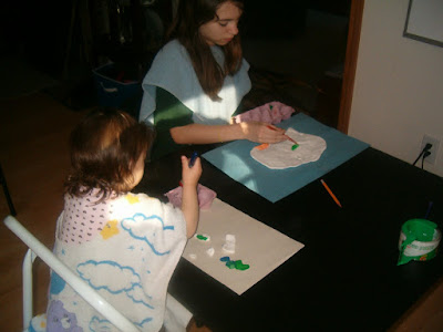 We used a ream of finger-paint paper for the back ground, some coloring pages we downloaded and lots of clip art and doo-dads to make if fun!