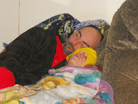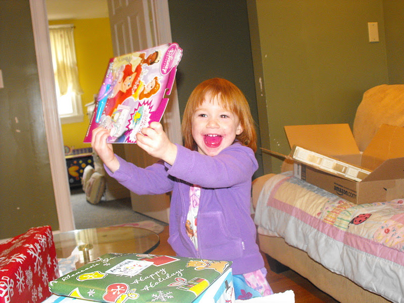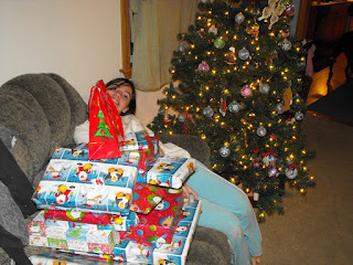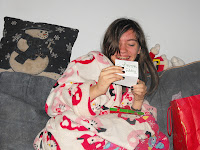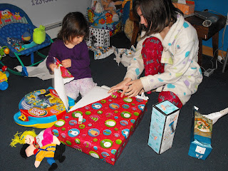 CJ stay snuggled in bed a bit later than usual. Then SC and KM opened up some presents for the classroom...