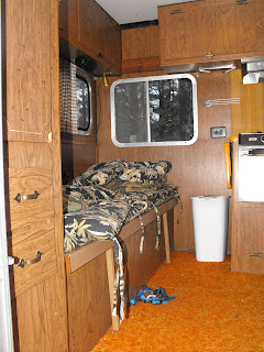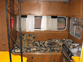 We are planning on taking the stove out completely and putting in a bigger sink there, since we always use a grill when we are camping. The bathroom needs to be redone. We are thinking of using some leftover flooring to get rid of the orange carpeting. The outside will be powerwashed and painted - there was some talk of bedliner on the exterior, but I am trying to push away from that one. I would be happy if we could also find a bit bigger fridge, but I am not holding my breath on that one.