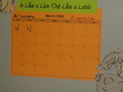 We started by making a calendar to track how many wintry days and how many springlike days we have this month.