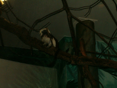 We observed the Tamarins for quite a while and discovered that the female was predominately left handed while her father was right handed! We also learned they really like the light fixtures at the top of the trees for some reason!