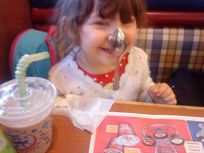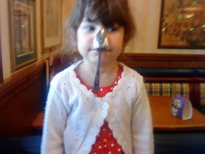 Then we went out for a lunch at their favorite restaurant were we taught SC how to balance a spoon on her nose...now if I could get the pictures off my phone and into my computer you could see how impressive it is for a not yet 3 year old to balance a spoon on her nose! I promise to post them as soon as I manage to figure it out!