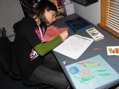 Here she is working diligently on her inspired pieces of art!