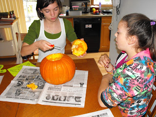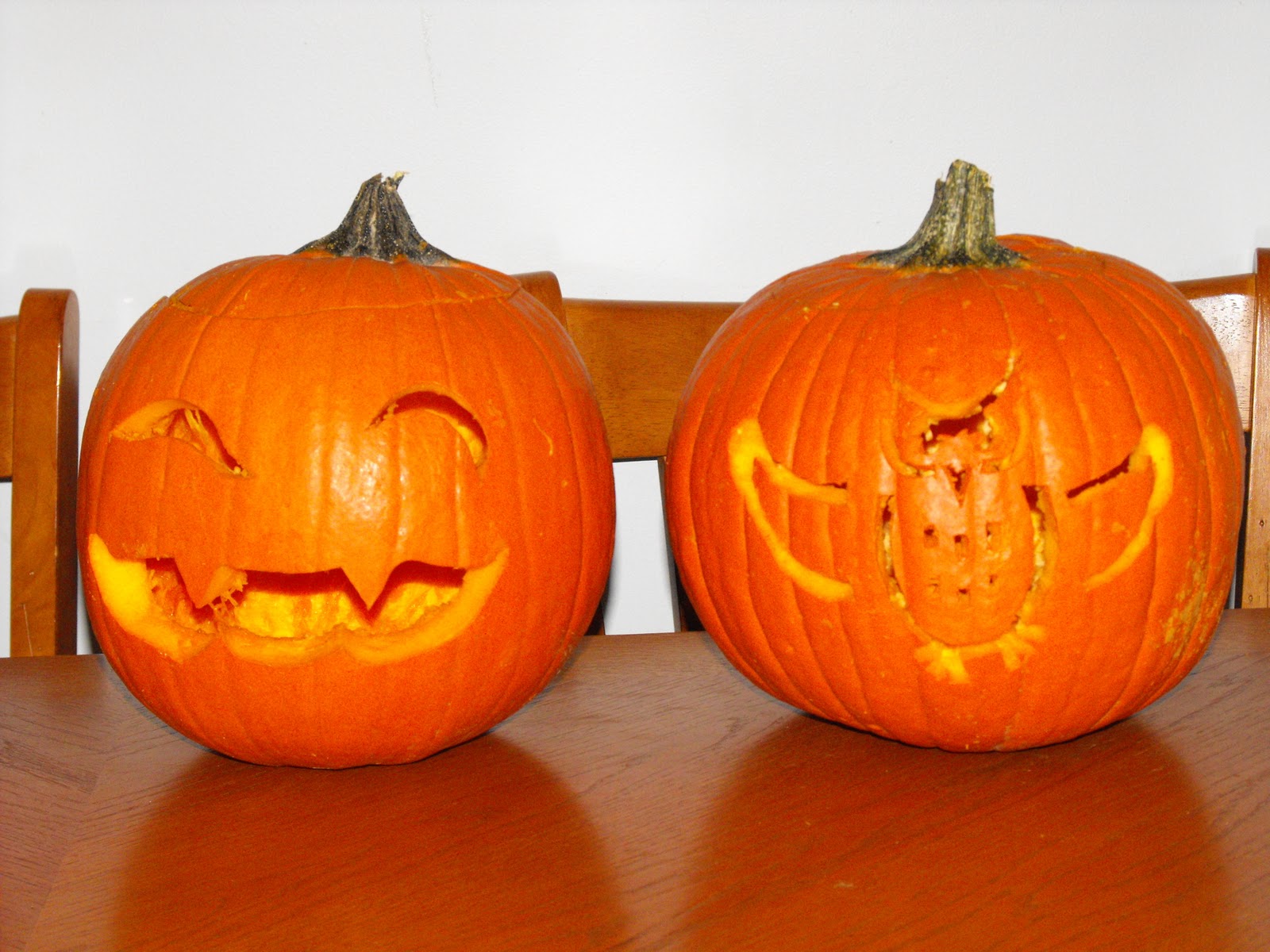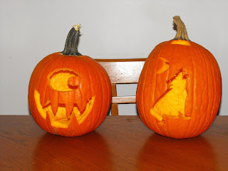 Yesterday was pumpkin carving day at our house! We like to do it a week before Halloween so that we can enjoy them, but they don't get too rotten before hand.