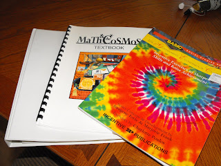 After nearly a full month off from book work, KM was ready to start back up.She started her Math & The Cosmos, U.S. Government and Economics, Piano Level 2B and French programs.